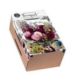 Kweek je eigen bloemen "Boeket". Er zijn vier nieuwe pakketten voor een kleurrijke verkoopactie. Op de afbeelding ziet u het boeket "Harvest time". Verder is er het pakket "Summer Breeze", "Indian Summer" en "Happiness".